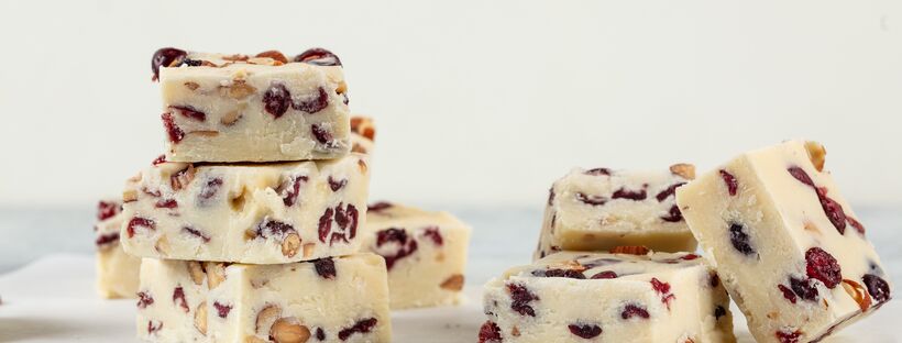 Instead of a typical square or rectangular baking pan, why not whip up a batch of White Chocolate Cranberry Almond Fudge baked in the bottom of a bundt pan instead? The shape makes it easy to turn into a Christmas wreath with just the addition of some decorative icing and seasonally colored sprinkles, and perhaps even a silk bow for good measure.