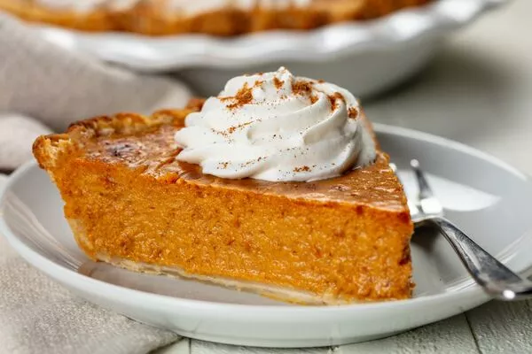 Serve the pie cold or at room temperature. Prepare freshly whipped cream to serve. Sprinkle some ground cinnamon or freshly grated nutmeg over the cream as garnish.